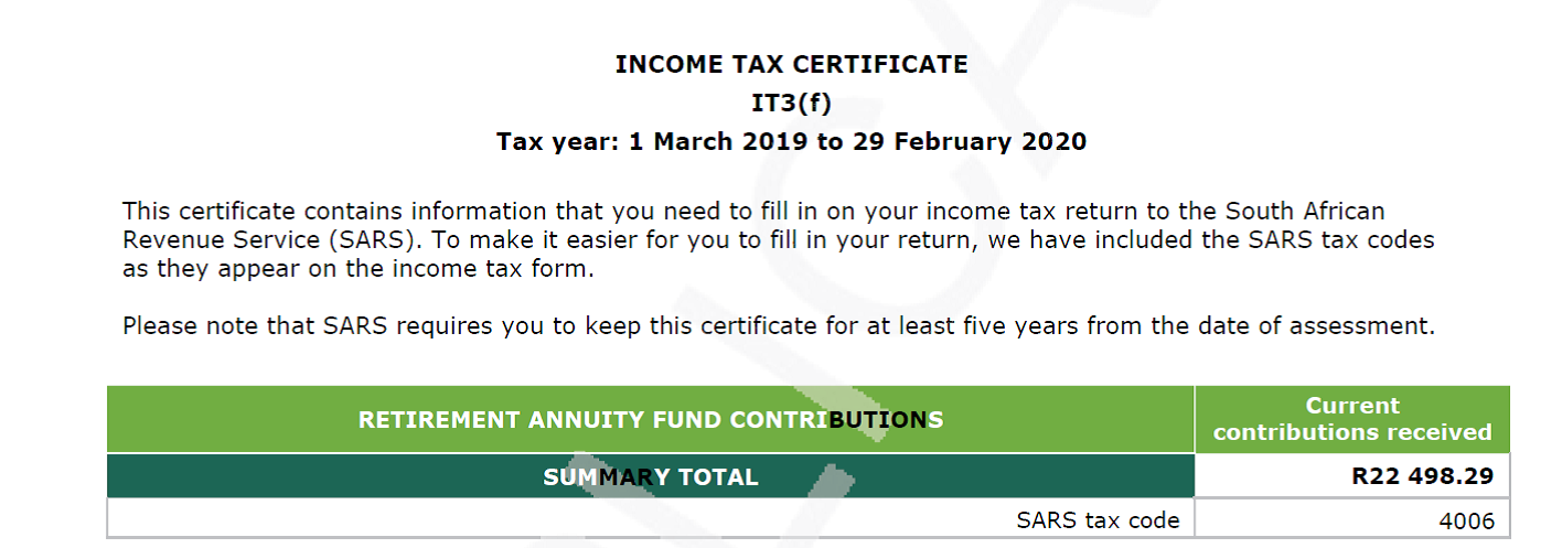 - If you contribute to an RA, your fund manager should send you an annual RA certificate (sometimes, but not always labeled an IT3(f) certificate, as per the example supplied. PLEASE SEND THIS TO US.